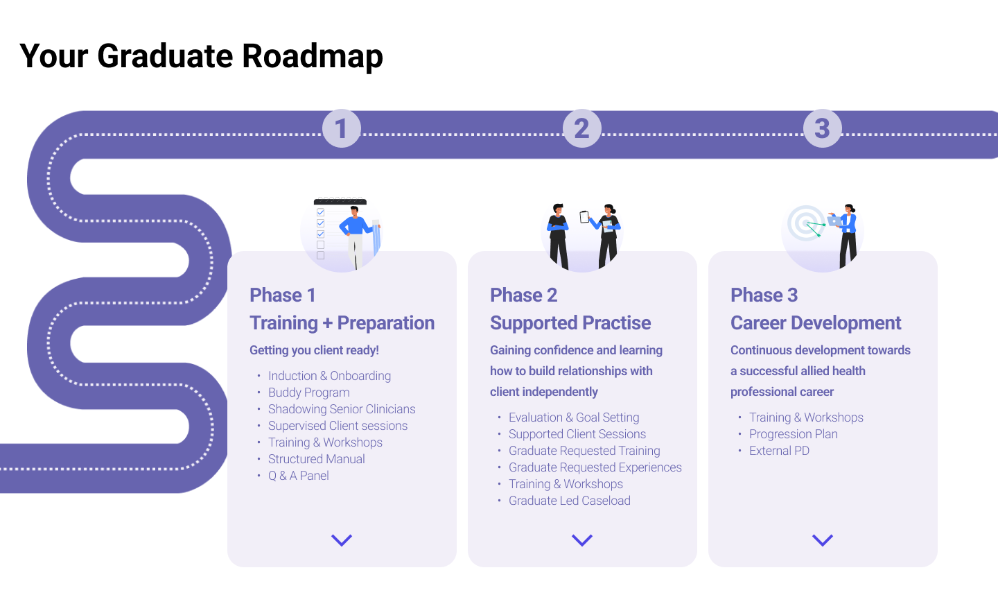 New graduates don’t feel adequately prepared or trained to provide services end to end (i.e. paperwork, processes, clinical knowledge, scheduling) when they see clients independently.