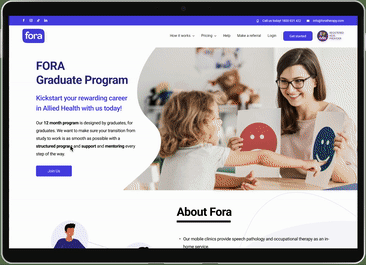 Fora Therapy is a mobile allied health service provider with a community of Allied Health Assistants (AHAs) all over Australia, and an in-house team of Allied Health Professionals (AHPs) including speech pathologists, occupational therapists, and physiotherapists.