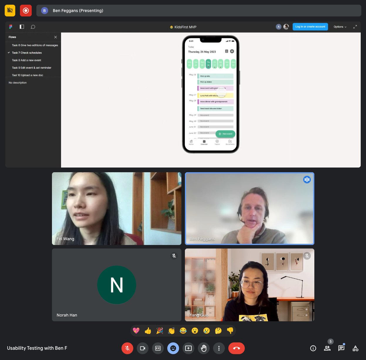 Another designer and I led the usability testing of the prototype of the whole app. We tested the prototype with 5 co-parents, mapped out the common themes and made relevant recommendations.
